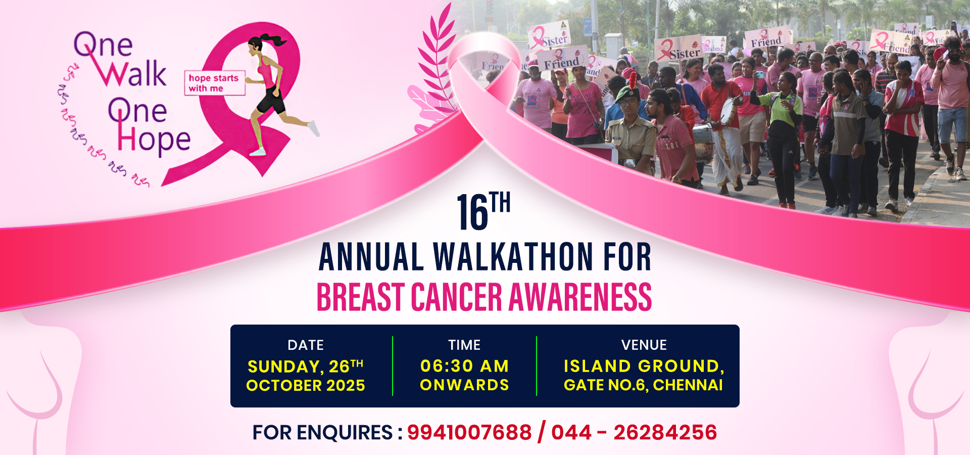 As part of International Breast Cancer Awareness Month, we are excited to host our 16th Annual Walkathon, “ONE WALK ONE HOPE”, this October to raise awareness about the importance of regular breast examinations and early detection. Every year, over 5,000 people participate in the Walkathon, coming together in solidarity to support the cause.