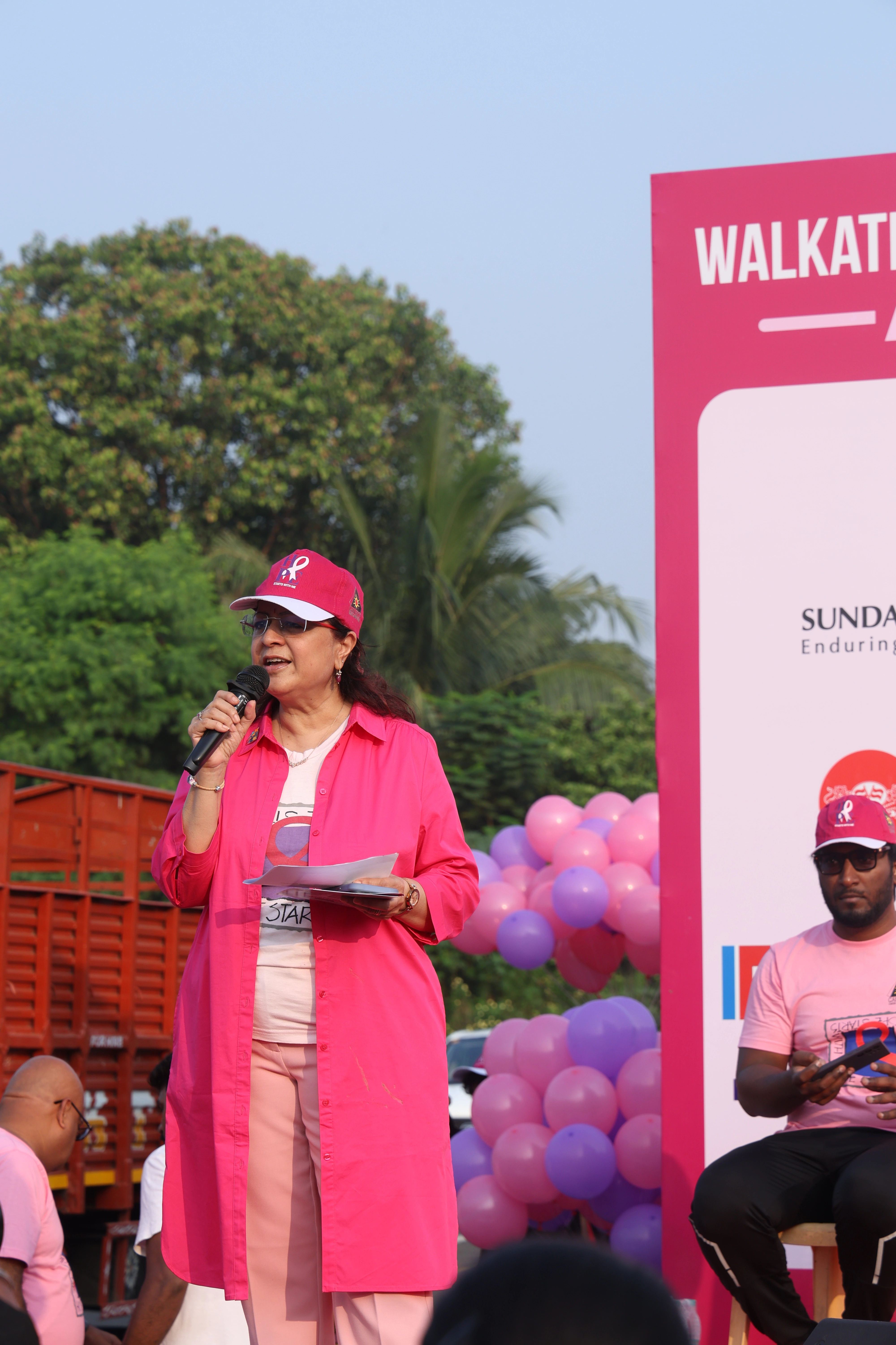 Dress in shades of pink to show your support or buy Walkathon T-shirts available at the venue.
